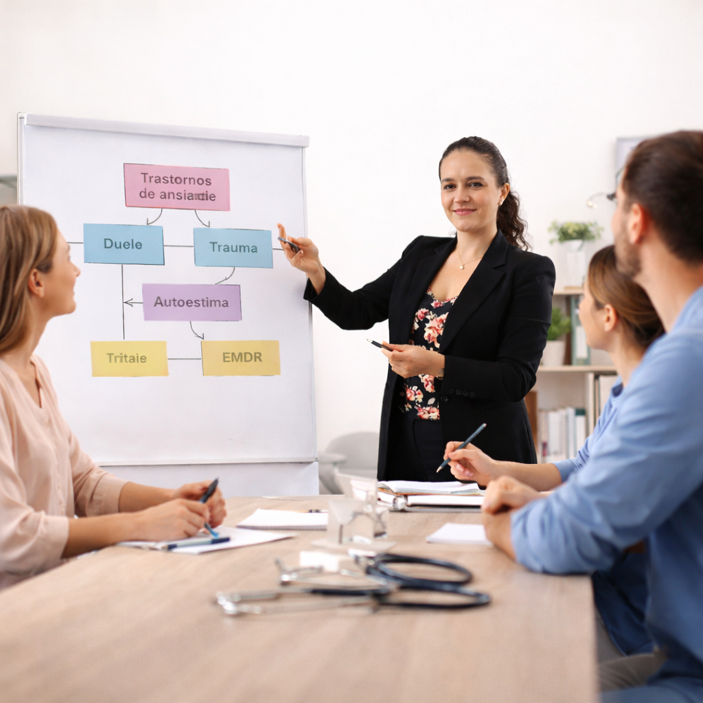 Diseño e imparto cursos especializados en salud mental y desarrollo humano dirigidos a psicólogos y profesionales de la salud. Estos espacios formativos integran teoría actualizada, experiencia clínica y reflexión ética, y cuentan con aval del SEP CONOCER, garantizando calidad académica y validez oficial. Próximamente, estos programas estarán disponibles en modalidad abierta.